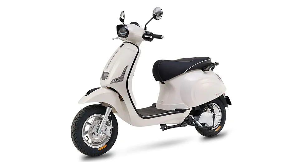 Victoria mô phỏng kiểu dáng Vespa cổ điển kết hợp cùng dải đèn định vị ban ngày tinh tế. Hệ thống lốp không săm tăng độ bám đường và giảm rủi ro thủng lốp bất ngờ.